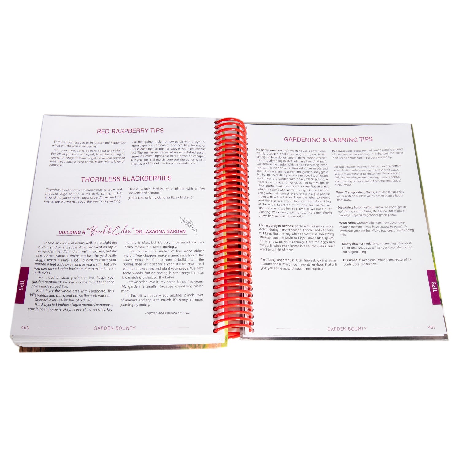 Come with me. I'm so excited to present to you seasonal specials I've collected from my family and friends. From down home kitchen staples to gourmet exotics, I'm convinced you'll find some wonderful ideas. For quick reference, you'll find that each veggie and fruit has their own section, also labeled with handy thumb tabs. Included are general preservation instructions and a Home, Health and Beauty section. A sprinkling of garden tips wraps up this unique cookbook.