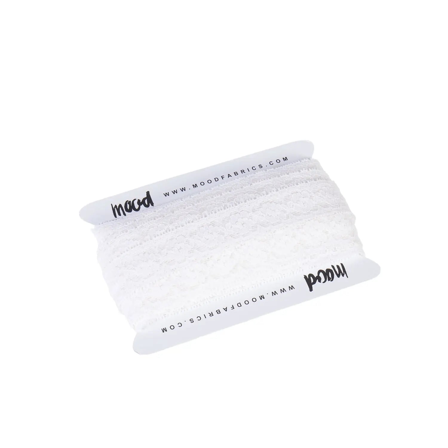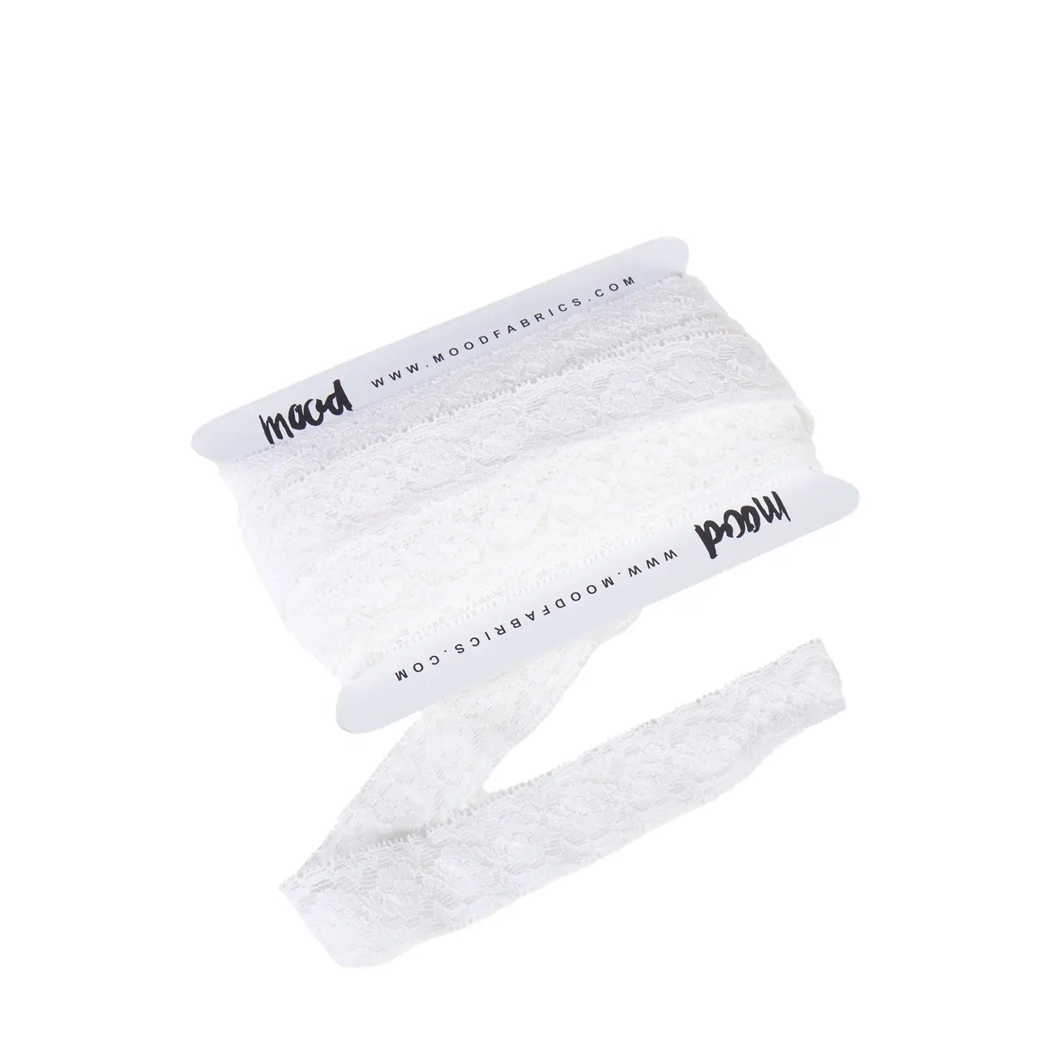 Add a touch of elegance to your slips and night gowns with white elastic stretch Lace. Sold by the yard, with a minimum quantity of 1 yard. 1-1/4 inch wide.